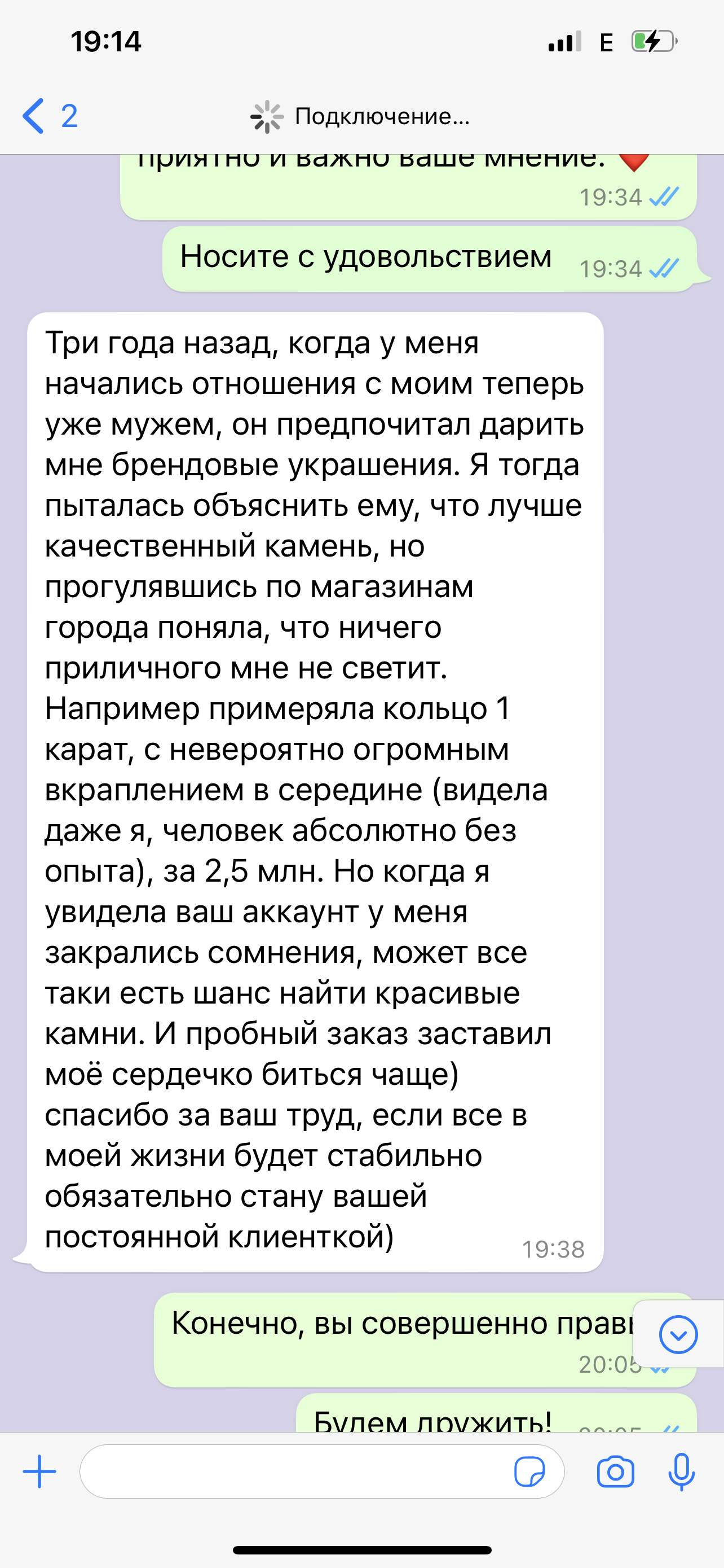 We are RESPONSIBLE for the entire process of jewelry making, from the selection of the best gemstone by a GEMOLOGIST to the manufacture of high-quality jewelry at our own high-tech production. We select a gemstone according to your request with an ideal price—quality ratio and develop 3d models of the future product, revealing all the advantages of the stone. As a result, you get the decoration of YOUR DREAMS with an investment value!